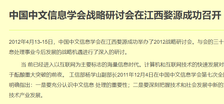 实验室主任朱靖波教授受邀参加了在江西婺源举办的中文信息学会2012战略研讨会,并作了关于机器翻译一些微观看法的学术报告。会议期间朱老师还参加了CWMT2012战略研讨会的预备会,与到会代表进行友好深入交流。